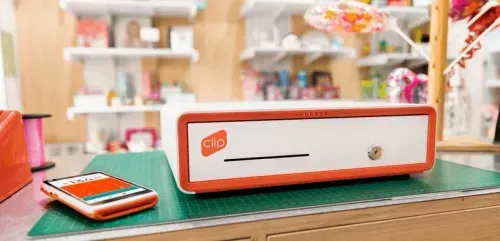 Esta caja registradora inteligente cuenta con una luz UV de apoyo para verificar la autenticidad de los billetes, es compatible con cualquier terminal Clip y se enlaza de forma inalámbrica mediante Bluetooth®.