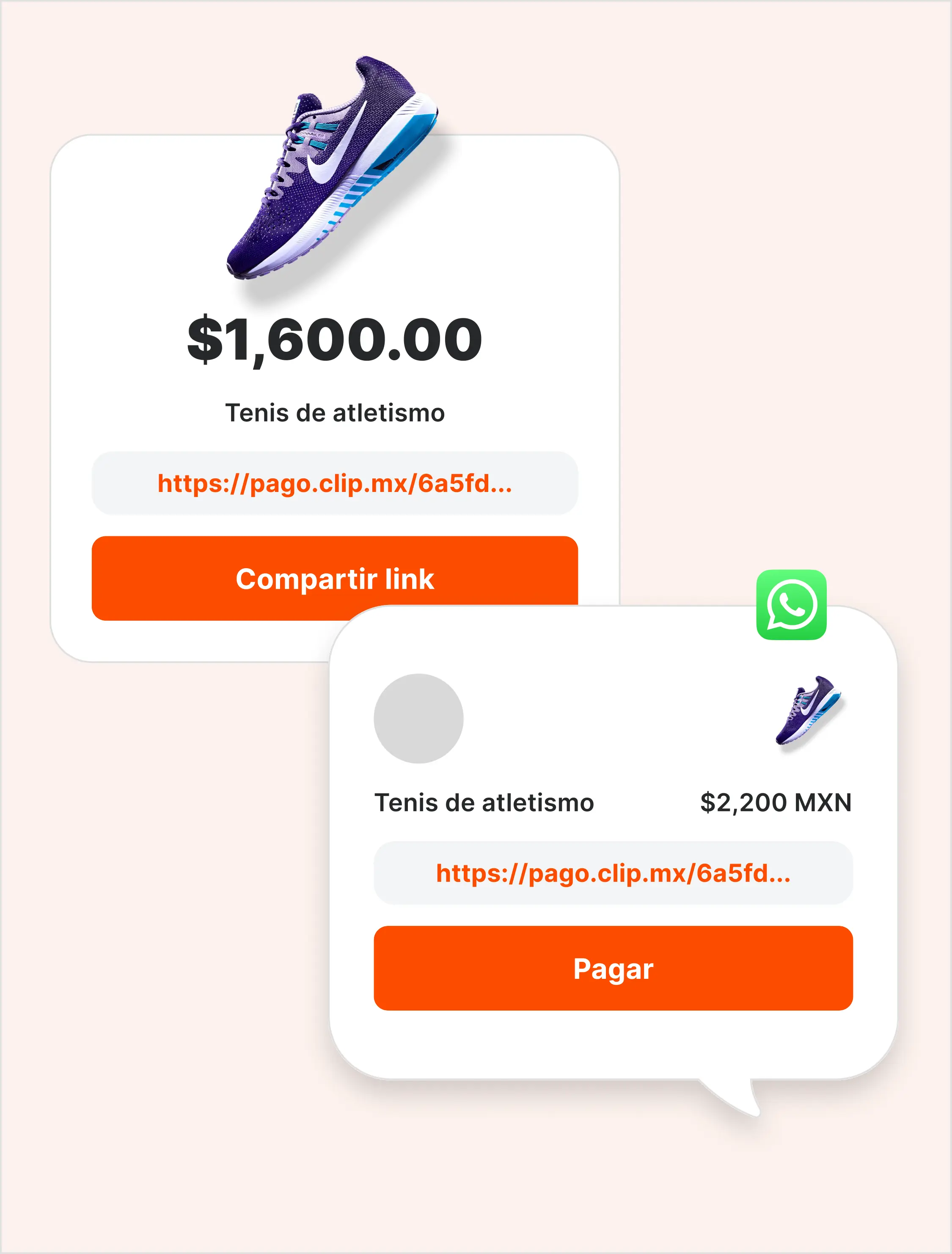 Acepta pagos a distancia y desde cualquier lugar, en todo momento. Genera links de pago en la app de Clip, compártelos por WhatsApp o redes sociales.